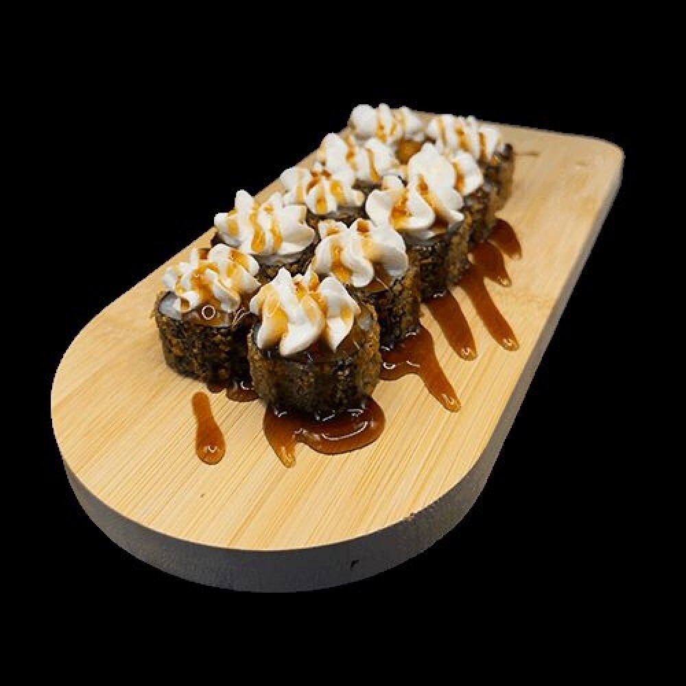 Сыр твороженный, унаги соус, панировка. На выбор: лосось, креветка, курица, кальмар, угорь.