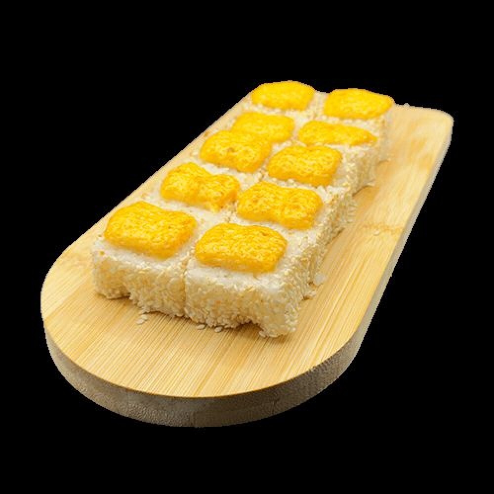 Сыр твороженный, огурец, кунжут, соус спайси. На выбор: лосось, креветка, курица, мидии, кальмар, краб