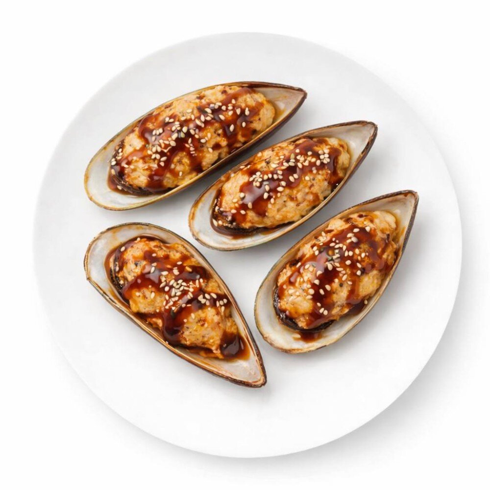 Мидии,соус для запекания,унаги и кунжут