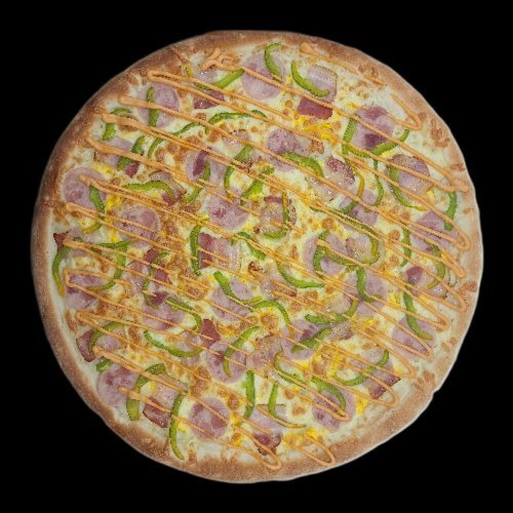 Сырный соус, моцарелла, бекон, ветчина, перец болгарский, соус бургер