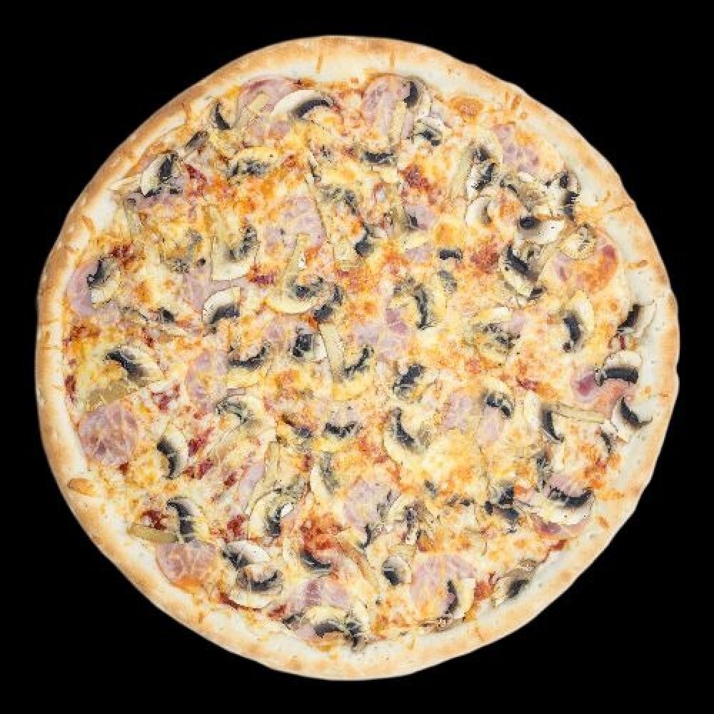 Пицца соус, моцарелла, ветчина, шампиньоны, сыр голландский
