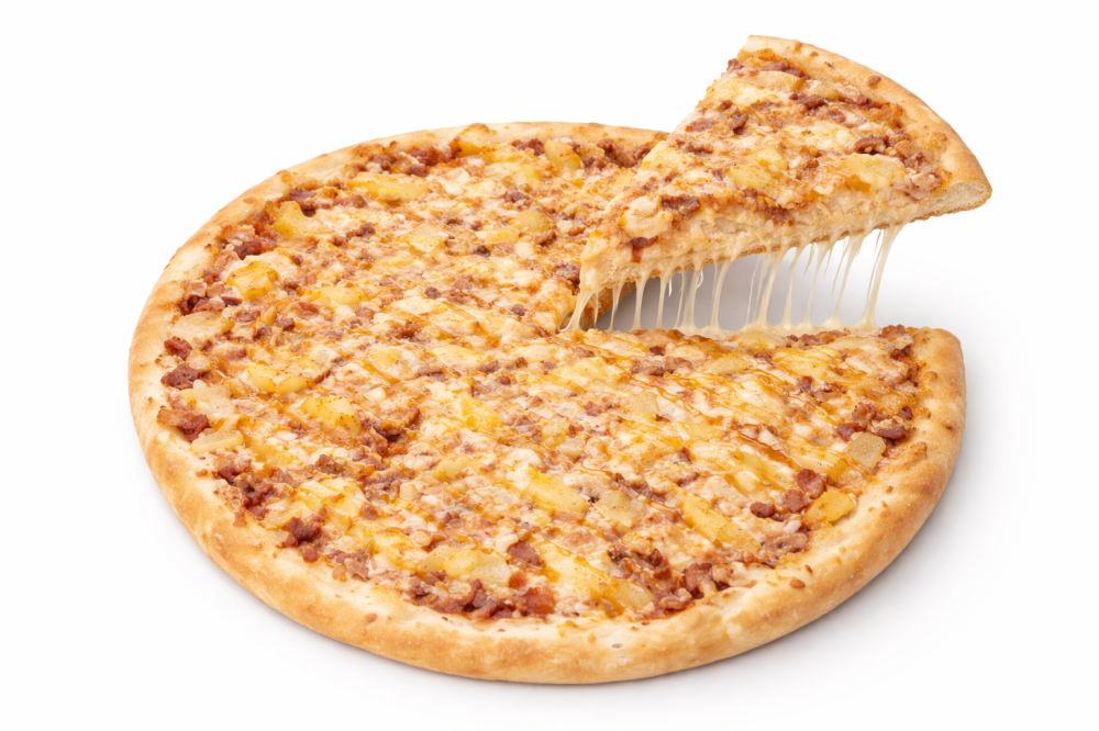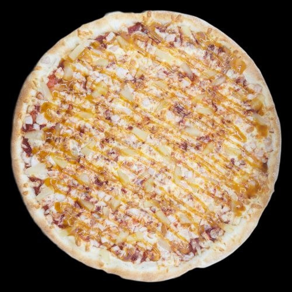 Пицца соус, моцарелла, курица, ананас, соус кисло-сладкий