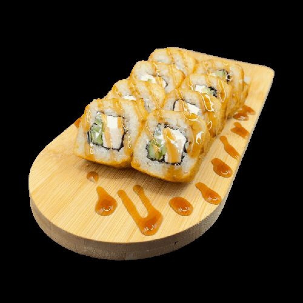 Сыр твороженный, огурец, курица, соус унаги, панировка